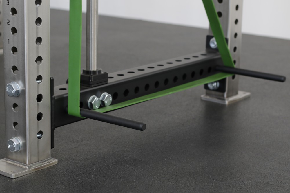 Kolík na gumy s integrovaným magnetom – ten zaisťuje, aby kolík pri bežnej prevádzke sám od seba nevypadol. Nie sú potrebné žiadne extra poistky, ktoré môžete stratiť alebo sa budú len povaľovať po fitku. Použitie je jednoduché, kolíky stačí prestrčiť do dier na stojane alebo klietke a prehodiť cez ne expander (odporovú gumu). Túto jednoduchosť oceníte pri každom tréningu – šetrí to čas (často sa používajú až 4 kolíky) a zvlášť pri montovaní kolíkov v horných miestach.